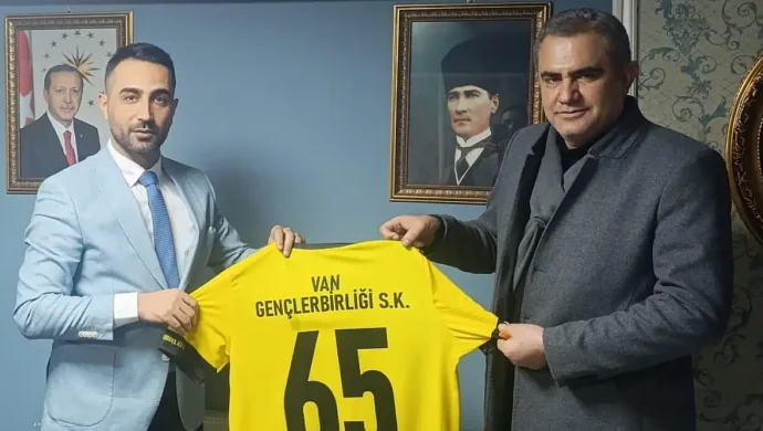 AK Parti heyetinin ziyaretinden duyduğu memnuniyeti dile getiren Van Gençlerbirliği Spor Kulübü Başkanı Ahmet Bayram, heyette bulunanlara kulübün çubuklu formasını hediye etti.